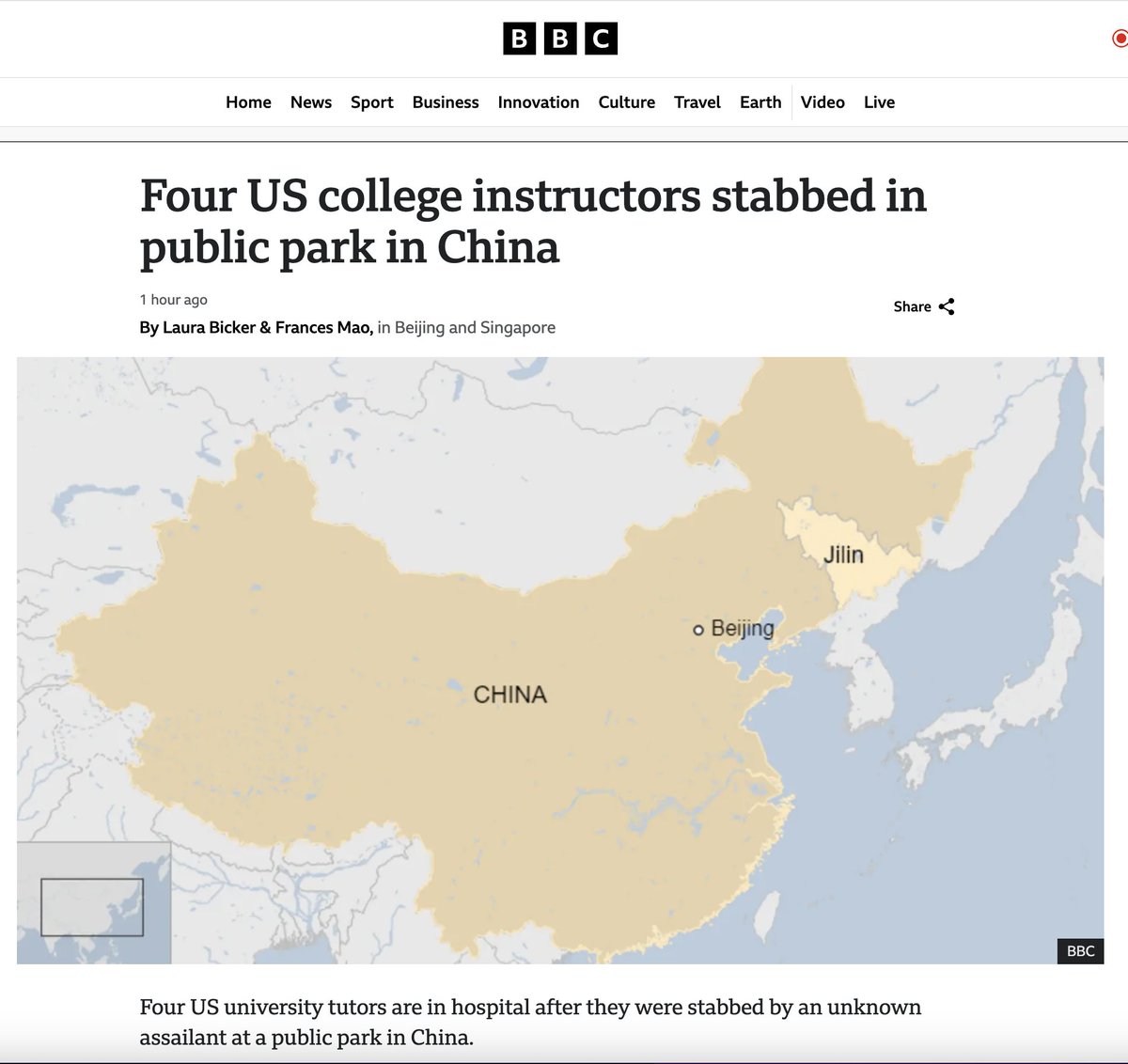 6月10日,四名美国人在中国吉林省 #北山公园 遭人用刀刺伤。