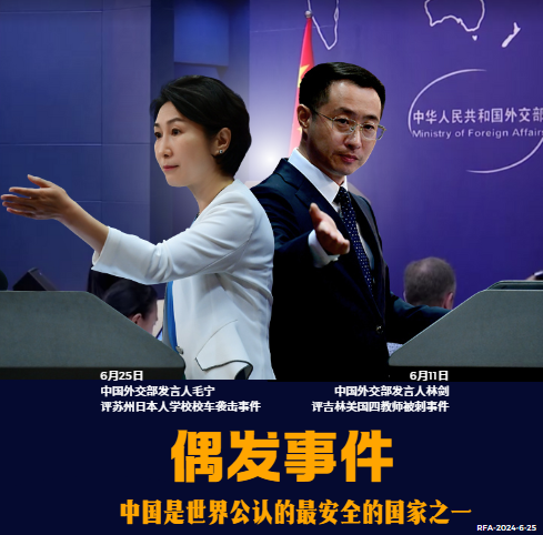 6月25日,外交部例行记者会上,发言人毛宁称 #苏州日本人学校校车袭击事件 为偶发事件,中国是世界上公认的最安全的国家之一, 我们始终欢迎外国人来中国。