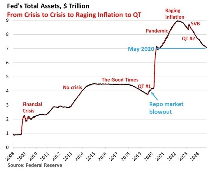 BREAKING: The Fed’s balance sheet decreased by $66 billion in September, bringing it down to $7.05 trillion, the lowest level since September 2020. Does this imply that the Fed is dumping stocks and bonds on the market, especially since some assets are at all-time highs? The Fed is not dumping stocks, as it did not purchase any in the first place. Instead, it is reducing the size of its balance sheet, which involves selling bonds that it acquired during the COVID period at a specified rate each month.