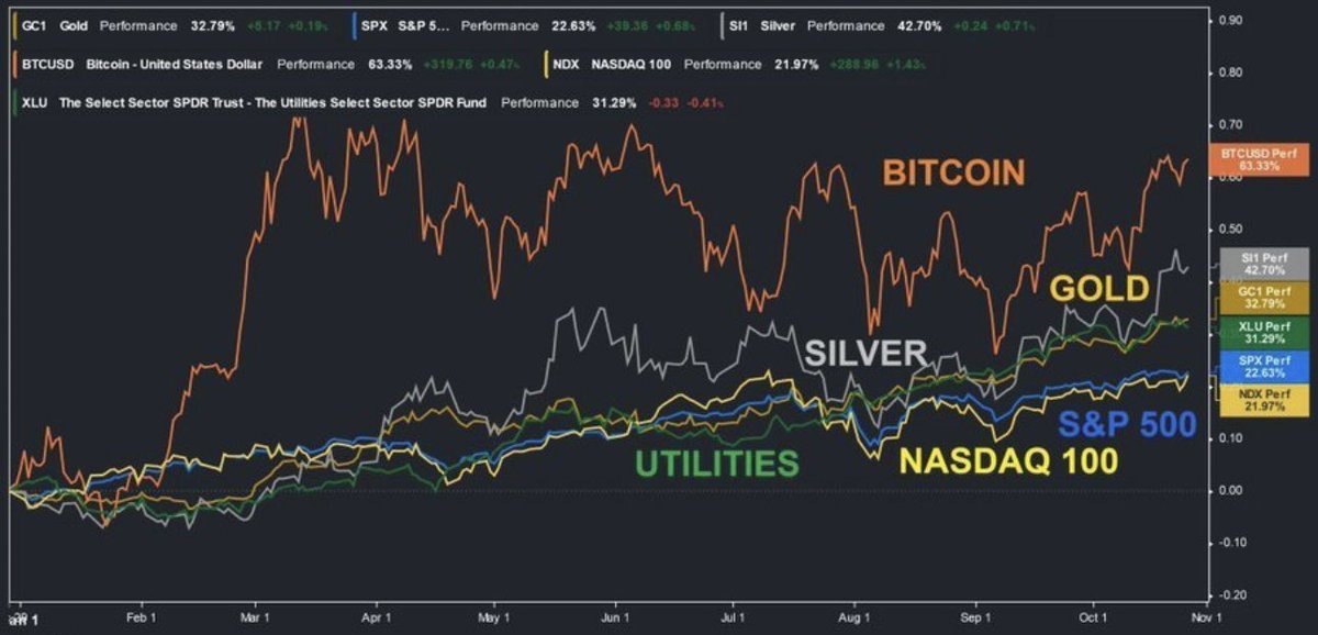 尽管今年的美股仍然很牛,但是比特币、白银、黄金在今年的表现都优于标普500指数。比特币涨63%,白银涨43%,黄金涨33%,标普500指数涨22%,纳斯达克100指数涨22%。过去三年,黄金上涨了53%,几乎是标准普尔500指数回报率的两倍。黄金会涨到3,000美元吗?Gold has risen 53% over the past three years, nearly double the S&P 500’s return. The so-called "barbarous relic" has performed remarkably over recent years. Is gold on its way to $3,000?