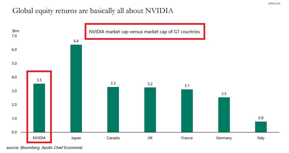 英伟达(NVDA)股票规模有多大?NVDA的市值目前为3.5万亿美元,是仅次于苹果的全球第二大公司。该公司的市值现在超过了加拿大、英国、法国、德国和意大利的整个股市。如果NVDA的股票进入熊市会发生什么?How large has NVIDIA’s stock become? NVIDIA’s market capitalization now stands at $3.5 trillion, making it the second-largest company in the world after Apple. The firm is now bigger than the entire stock markets of Canada, the UK, France, Germany, and Italy. What would happen if NVIDIA’s stock entered a bear market?