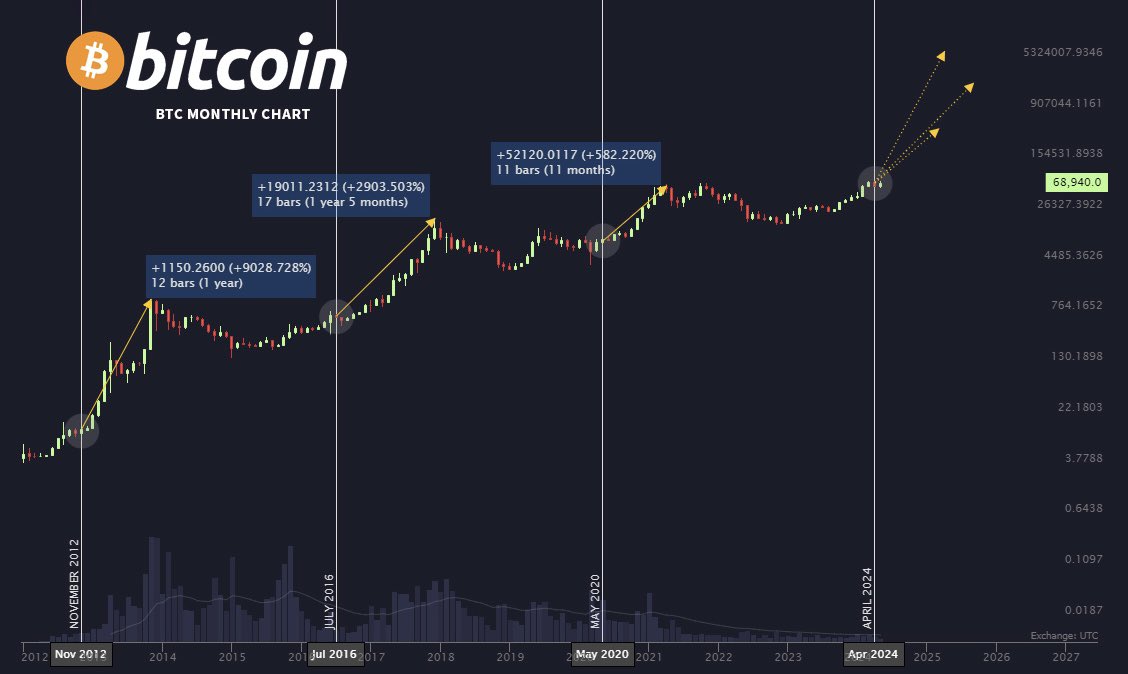 Bitcoin (BTC) has indeed shown significant price increases following previous halving events. The halving, which occurs approximately every four years, reduces the reward for mining new blocks by half, effectively reducing the supply of new Bitcoins. Historically, this has led to increased scarcity and has been followed by substantial price rallies