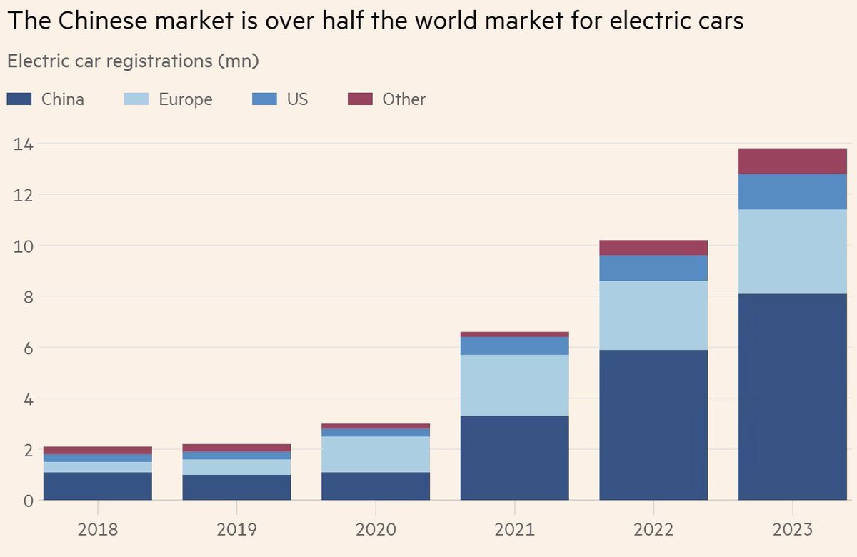 刚刚:欧盟将对中国电动汽车征收高达48%的关税。欧盟委员会通知汽车制造商,将从下个月起对进口自中国的电动汽车暂时征收17-38%的额外关税。🚨 Just in: The EU is to hit Chinese electric cars with tariffs of up to 48%. The European Commission notified carmakers that it will provisionally apply additional duties of between 17-38% on imported Chinese EVs from next month.