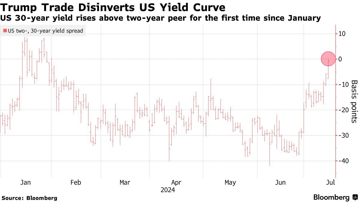 这是一个值得关注的发展:美国两年期和三十年期国债收益率曲线,自一月份以来首次不再倒挂。换句话说,2年期收益率再次高于30年期收益率。随着收益率曲线不再反转,更加确信,现在是时候探索替代投资环境了。The US yield curve between 2-year and 30-year Treasury yields has uninverted for the 1st time since January. In other words, 2-year yield is again higher than the 30-year.