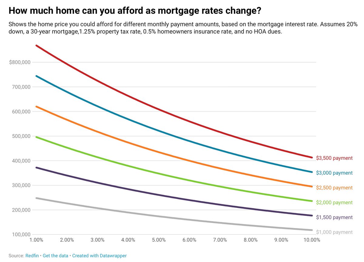 每月预算为3,000美元的美国购房者,可以以6.85%的抵押贷款利率(当前每日平均值))购买价值447,750美元的房屋…自4月份抵押贷款利率达到5个月峰值以来,买家的购买力已增加22,250美元。US Homebuyer on a $3k monthly budget can afford a $447,750 home with a 6.85% mortgage rate (current daily average) ... buyer has gained $22,250 in purchasing power since mortgage rates hit a 5m peak in April.