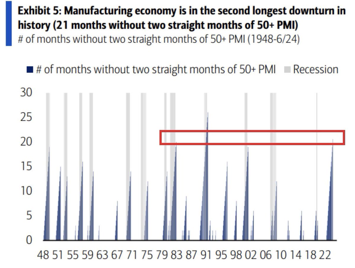 美国制造业衰退已然来临:美国制造业在过去21个月中有20个月处于萎缩状态。换句话说,制造业已经连续21个月没有出现扩张,这是有记录以来第二长的持续时间。这实在令人难以置信。US Manufacturing Recession is Here: The US manufacturing sector has contracted for 20 out of the last 21 months. In other words, it has been 21 months since manufacturing has seen expansion for two consecutive months, marking the second-longest streak on record. This is truly remarkable.