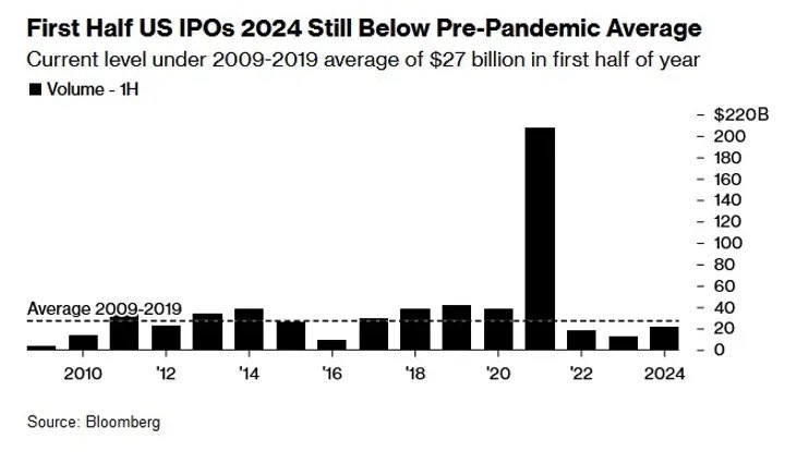 美股IPO市场现复苏迹象,本周筹资规模有望创去年9月以来新高。美国首次公开募股(IPO)市场有望在本周获得提振,多达55亿美元的筹资规模可能是投资者在新股上市低迷时期一直渴望的复苏的开端。从成长型IPO的角度来看,第三季度待上市的企业数量比我们预期的要少得多。但是,很多企业的董事会不喜欢被低估的市盈率,这使得今年的很多IPO,都推迟到了2025年。