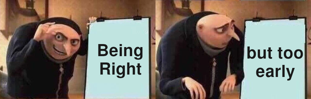 Often being right + early can be as bad as being wrong.