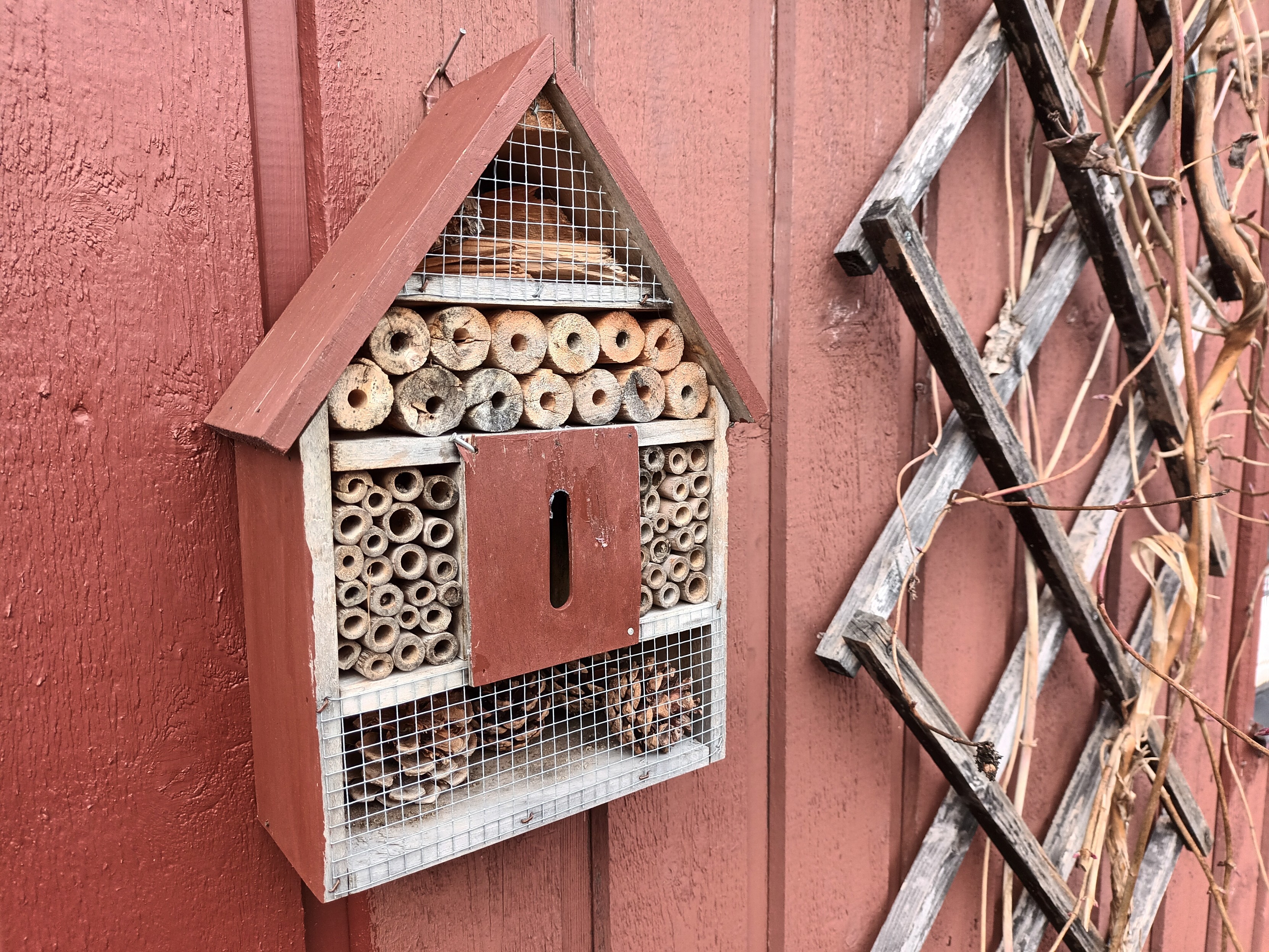 Took the #insects hotel out of the shed and renovated it. Always popular with the solo bees. #gardening