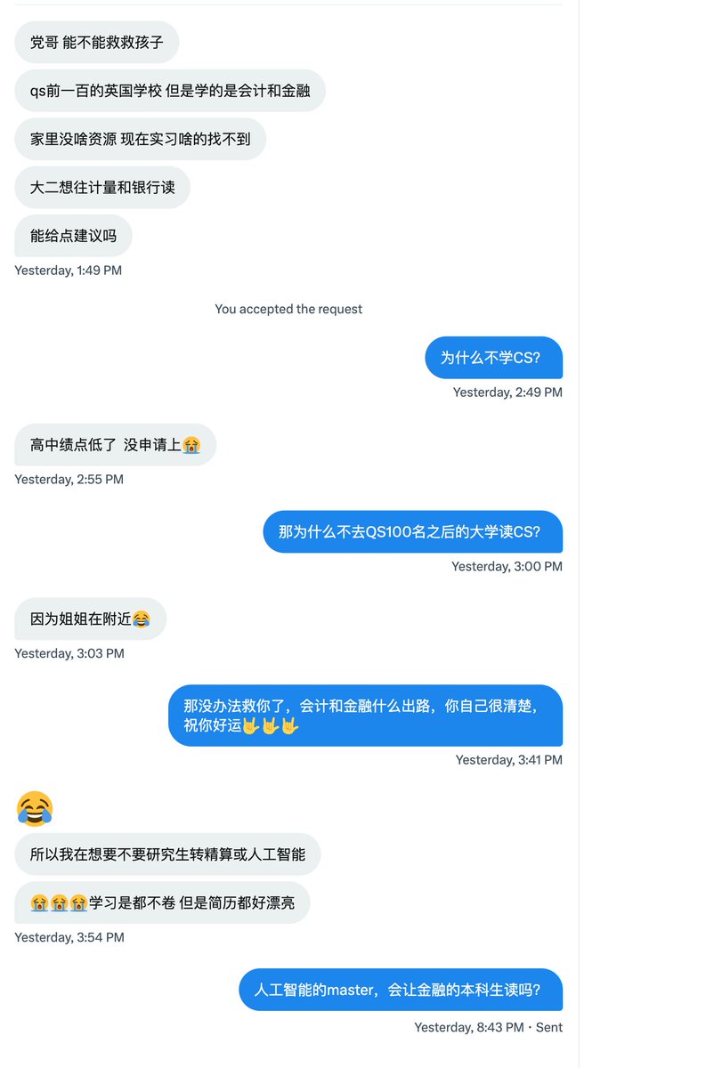 你为了那点QS排名,为了跟同学装逼,选了个最垃圾的专业,葬送了自己一辈子的前途和命运,为什么这时候才想到找你党哥来了? https://t.co/vsoBY2ZOj1