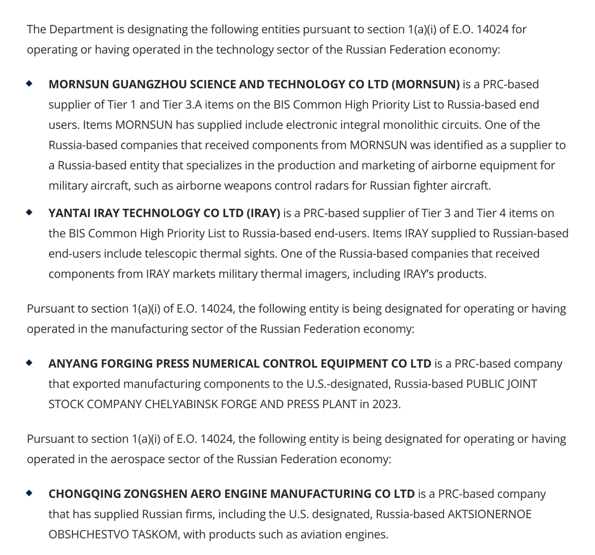 美国把下面四家中国公司加入制裁实体清单entity list,因为参与了俄罗斯战争的贸易 https://t.co/foYl2bTXEM