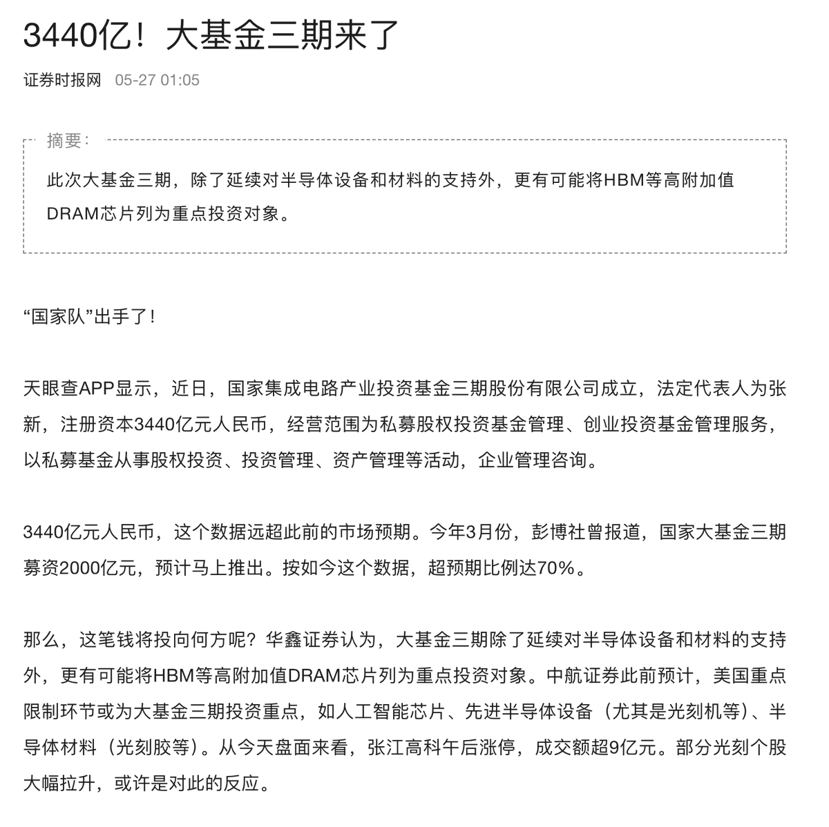 国家半导体大基金第三期,能融到3400亿,一大堆银行机构投资站台,说明了一件事: