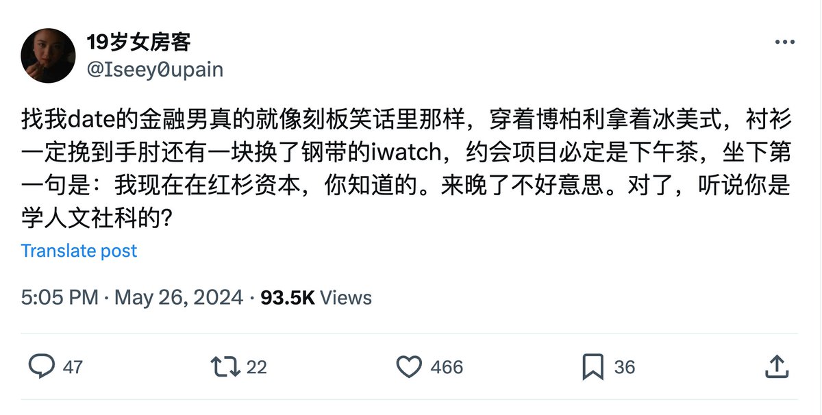 19岁的文科女:金融男一个个的太傻逼了,挂出来一个给姐妹们看看