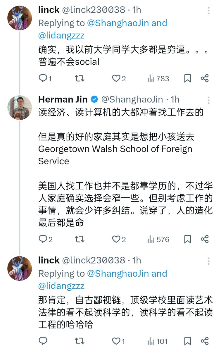 是不是觉得,自己中国人,学了个文科,就跟自己周围那些美国本土白人企业二代、议员二代、学术二代们平起平坐了是吧😅😅😅 https://t.co/kyfOk8XbnZ