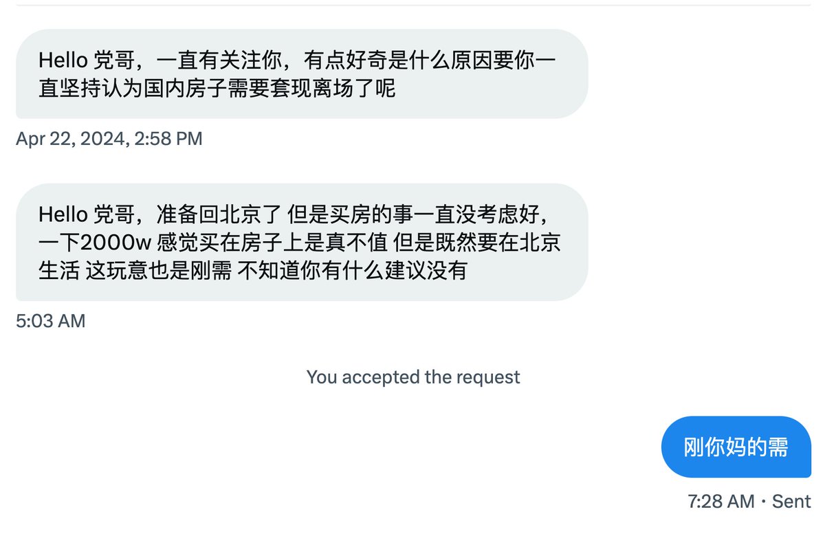 党哥回复:刚你妈的需。你妈死了买块坟地,都比你这种傻逼在北京花2000万买房更刚需。