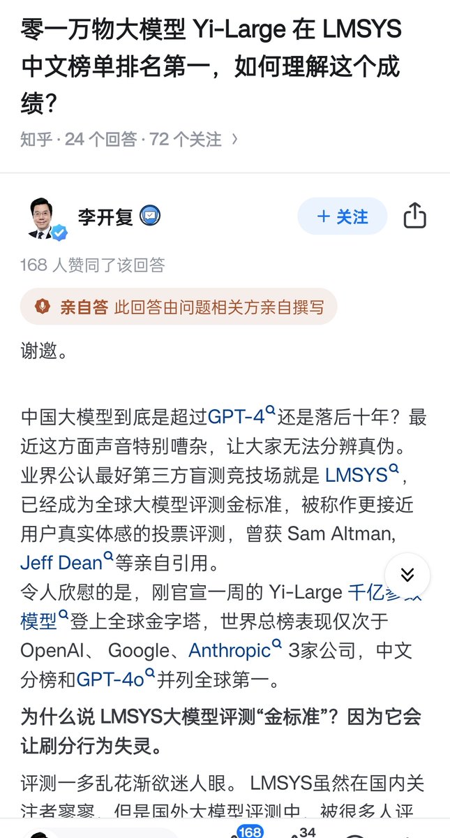 逆天,怎么李开复亲自给这种刷榜公关PR问题写回答了?