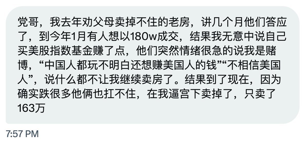 我建议家里卖房,爸妈非要跟我犟嘴,结果血亏17万。 https://t.co/j9rLal8Eil