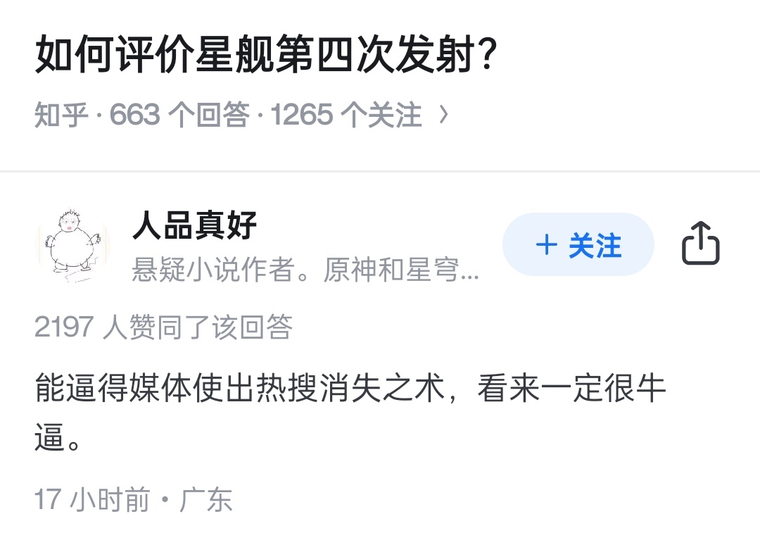 笑死,抖音、知乎、微博一起把站内星舰第四次发射的热搜给删了。