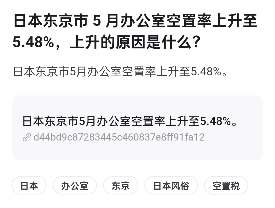“日本这次真的不行了,5月份办公室空置率上升到5.48%了,日本企业倒闭潮来临”