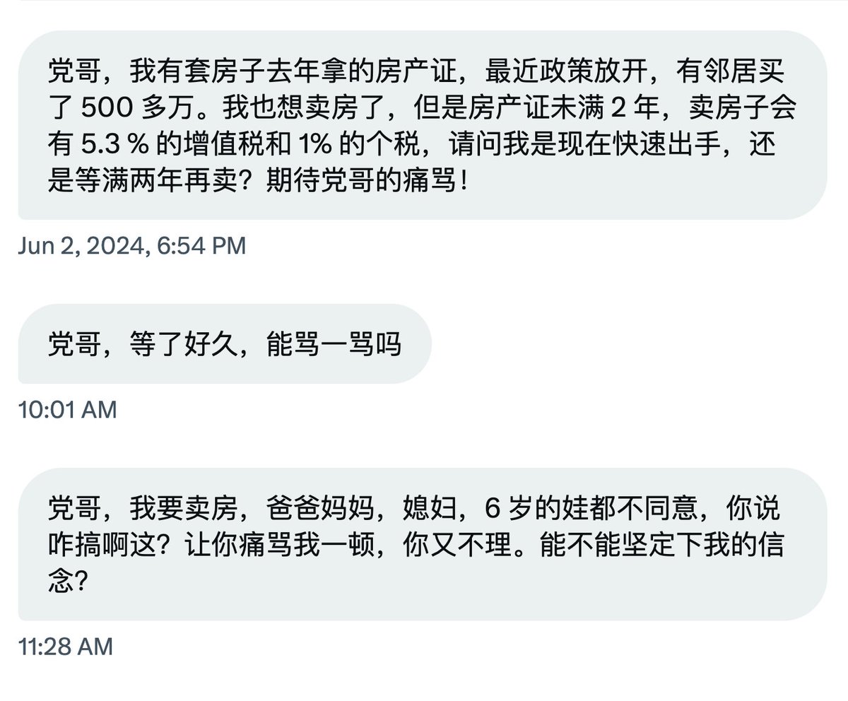 党哥反复教育过你们这些人:房子是交易成本极高的资产,这里的交易成本不只是税费、手续、时间,更包括家庭的心理和情绪价值,