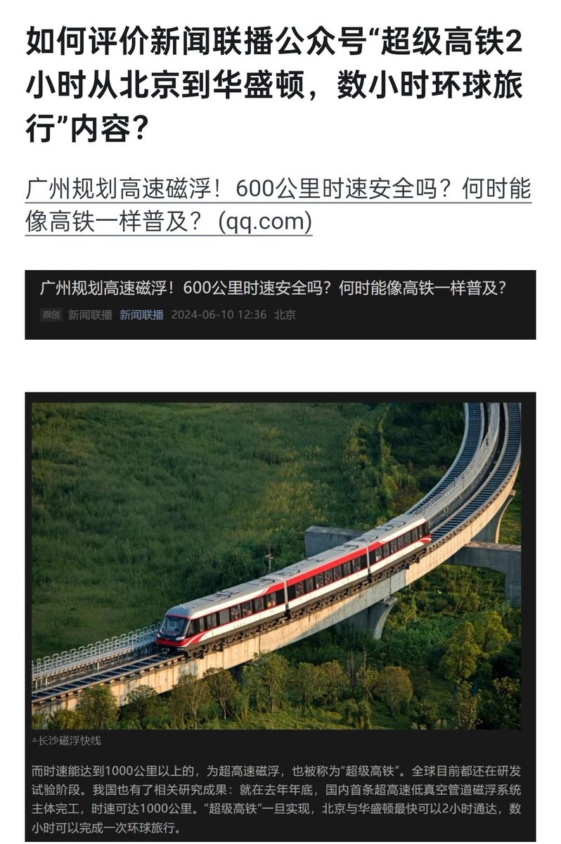 新闻联播开始鼓吹每小时20000公里的超级高铁了😅