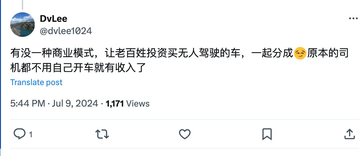 我劝你们一句话,就是不要瞻前顾后,考虑滴滴司机的饭碗,而和稀泥式地要求robotaxi不要铺开太快。