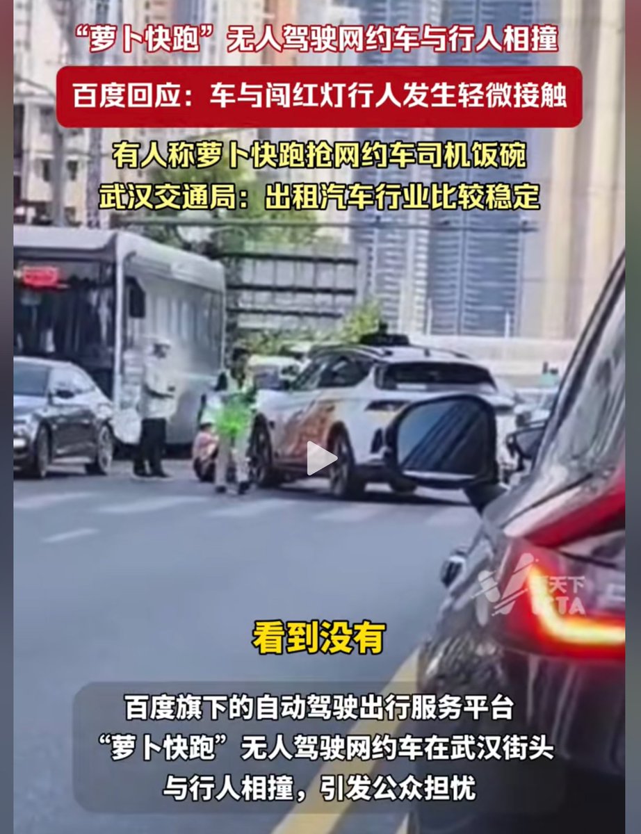 没想到, 2024年上半年,武汉和百度搞了个大新闻,把萝卜快跑直接部署了1000辆,一下子把问题扔回给了社会,一个个小视频频繁上热搜,逼着社会、公众、政府进行大讨论,逐步推动robotaxi落地。
