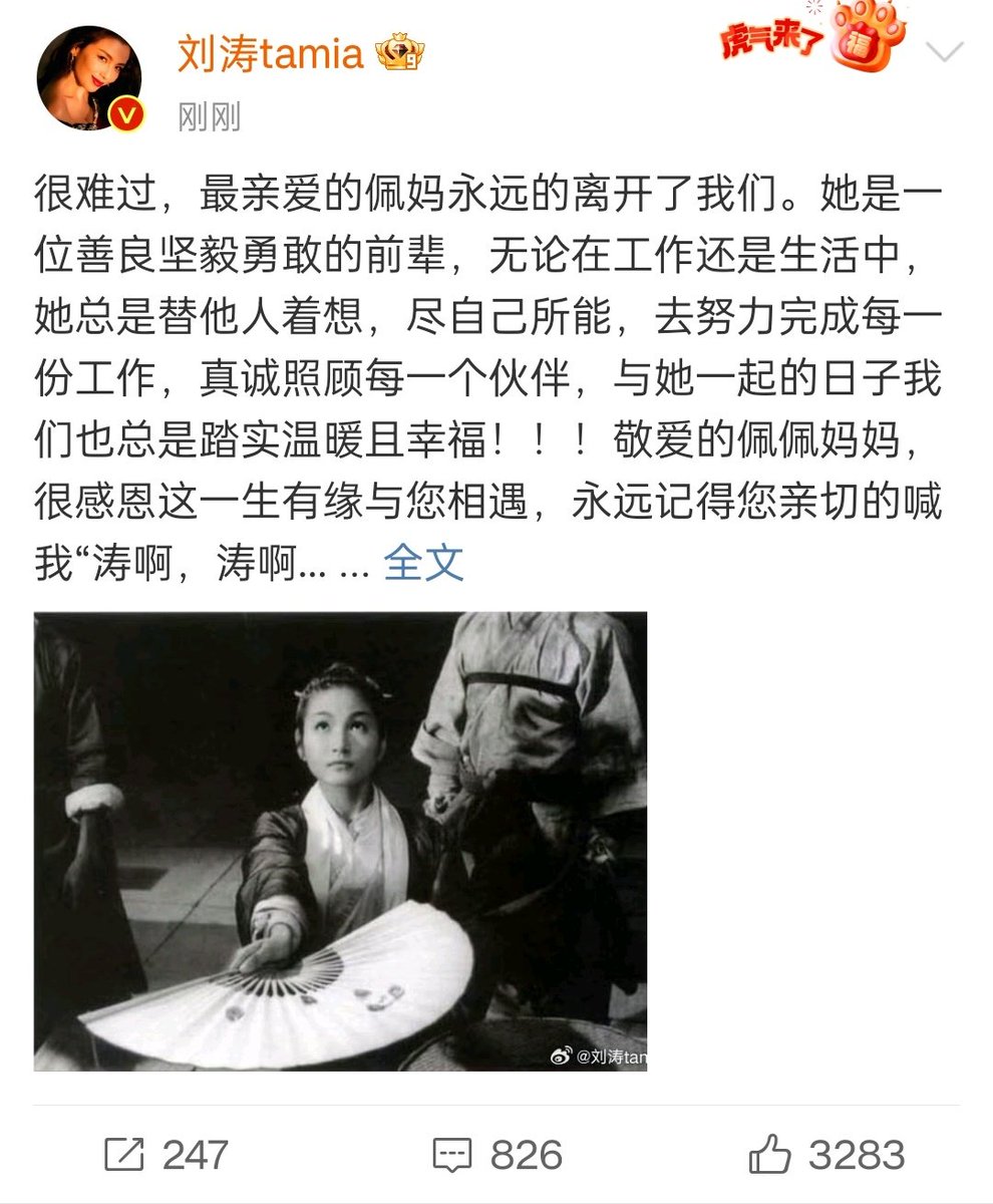 刘涛也确认郑佩佩逝世的消息 https://t.co/LPrs0zbC8T