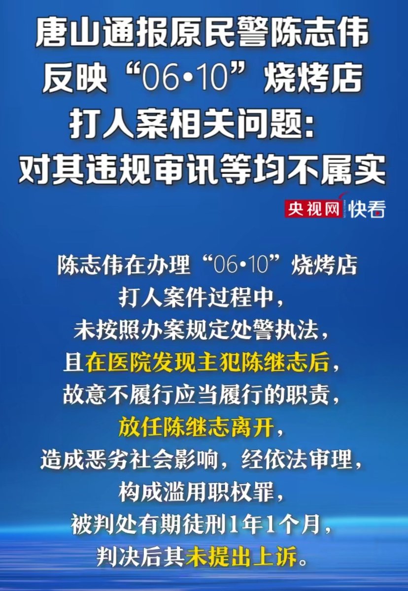 唐山市纪委、市公安局、市检察院、市法院组成工作组,认定离职警察陈志伟的揭发检举均不属实。 https://t.co/hj0G7JErx5