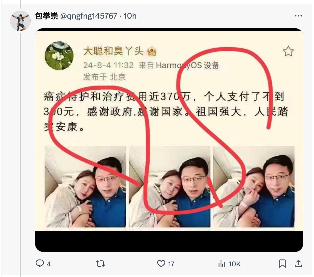 但是这种直接P图,说赵立坚老婆治三期乳腺癌花了370万的谣言,怎么也他妈有大傻逼相信啊😅