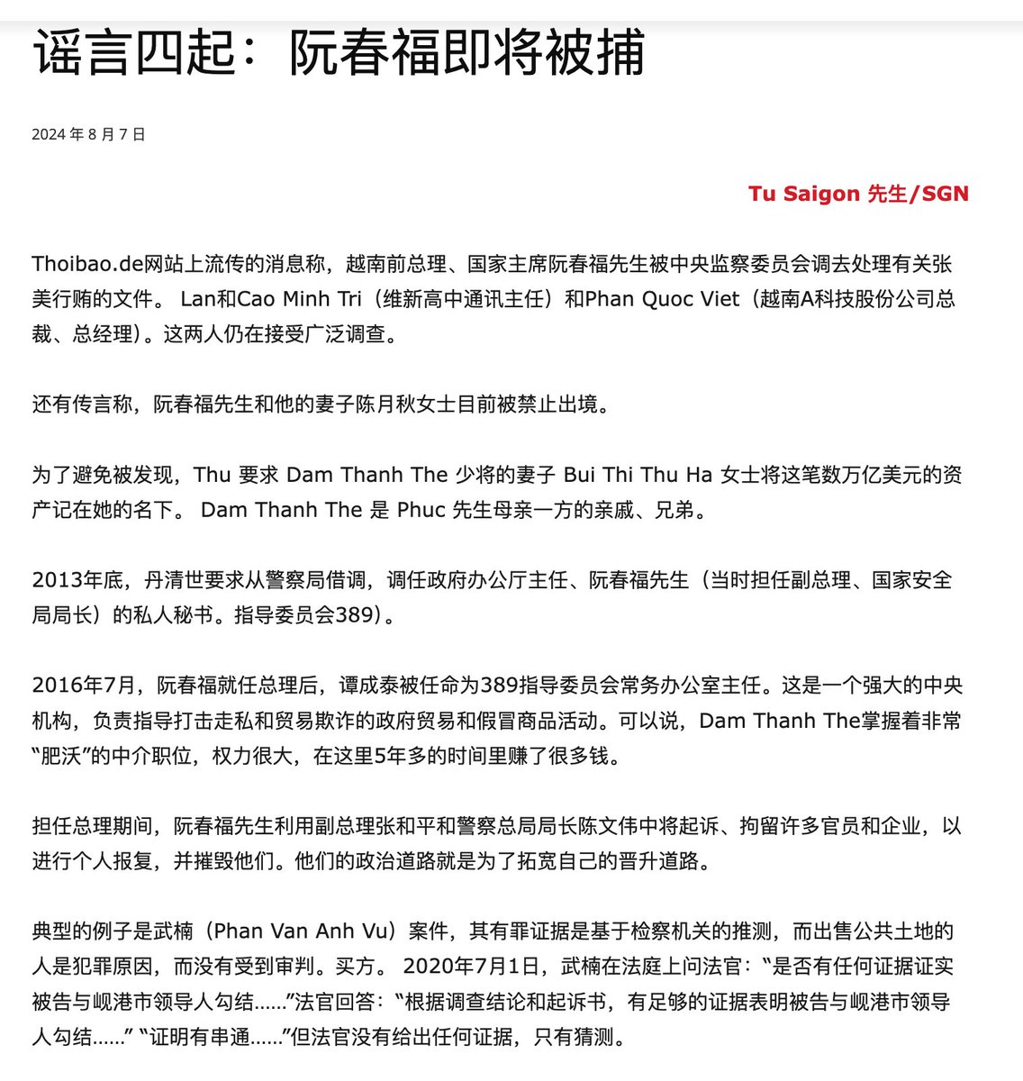 越南前二号人物、前总理、前国家主席阮春福正在接受调查,并且被禁止出境。 https://t.co/GTkxHo04ZK