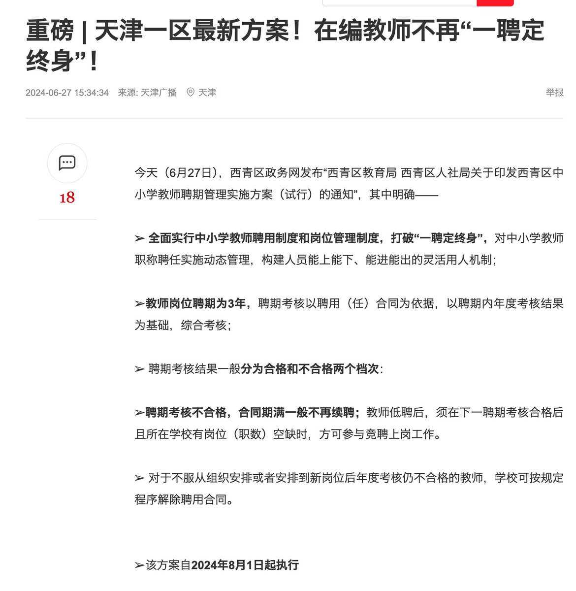 不知道这个制度能不能在天津市内铺开,但是作为全国人均教育资源最多、全国吃体制事业编比例最高的省市,天津这次比山东省厅直属事业的改革力度还要大。 https://t.co/dUSqrs8NQD