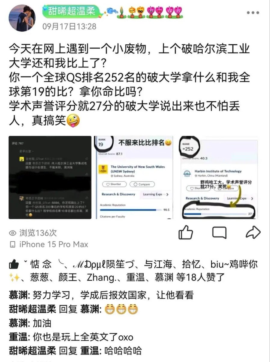 QS排名全球19的UNSW澳本,在QQ空间怒骂QS排名全球252的哈工大毕业生 https://t.co/HZ4GqyvwHE