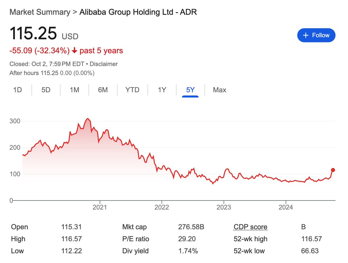 阿里股价暴涨只有两次,一次是2023年新冠解封, 当时人人都觉得中国这次经济要彻底好起来了;