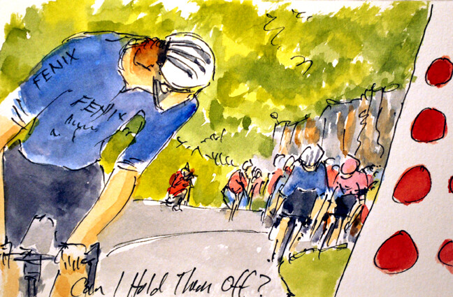 "Can I Hold Them Off?" @julieJvdv @FenixDeceuninck holding off the #peloton on the first climb of Stage 2 of @LeTourFemmes is available @ https://www.greigleach.com/large-multi-view/Tour-de-France--Tour-de-France-Femmes-2023/3967563-151-297438/Painting/can-i-hold-them-off-tdff23-7.html #TDFF2023 #cycling #art #watercolors #womenscycling #cyclisme #cyclismefeminin #ciclismo #ciclismofeminino #wielrennen