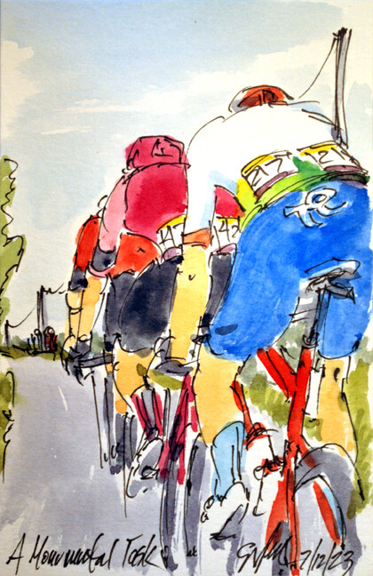 "A Monumental Task" @Daniel87Oss @TeamTotalEnrg @Andrey_Amador @EFprocycling & @LouvelMatis @Arkea_Samsic out on a monumental effort in the break away Stage 11 of @LeTour is for sale @ https://www.greigleach.com/large-multi-view/Tour-de-France--Tour-de-France-Femmes-2023/3965091-62-297438/Painting/a-monumental-task-tdf23-62.html #TDF2023 #art #cycling #watercolors #cyclisme #ciclismo #wielrennen
