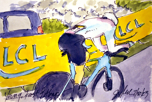 "Young, Fast, & Alone" Ella Wyllie @LifeplusWahoo trying to take over the @MaillotBlanc_ on the final day of @LeTourFemmes is still available at https://www.greigleach.com/large-multi-view/Tour-de-France--Tour-de-France-Femmes-2023/3969047-192-297438/Painting/young-fast-and-alone-tdff23-48.html #TDFF2023 #womenscycling #cycling #art #watercolors #cyclisme #ciclismo #wielrennen #cyclismefeminin #ciclismofeminino #vrouwenwielrennen