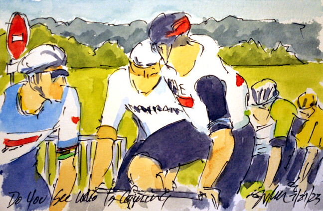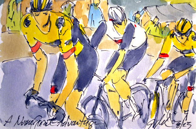 "Still More to Say" apparently @JasperPhilipsen @AlpecinDCK wasn't done lecturing @PascalEenkhoorn @lotto_dstny in stage 19 of @LeTour as @mathieuvdpoel leads him on. This is still avaiable at https://www.greigleach.com/large-multi-view/Tour-de-France--Tour-de-France-Femmes-2023/3966632-126-297438/Painting/still-more-to-say-tdf23-126.html #TDF2023 #cycling #art #watercolors #cyclsime #ciclismo #wielrennen