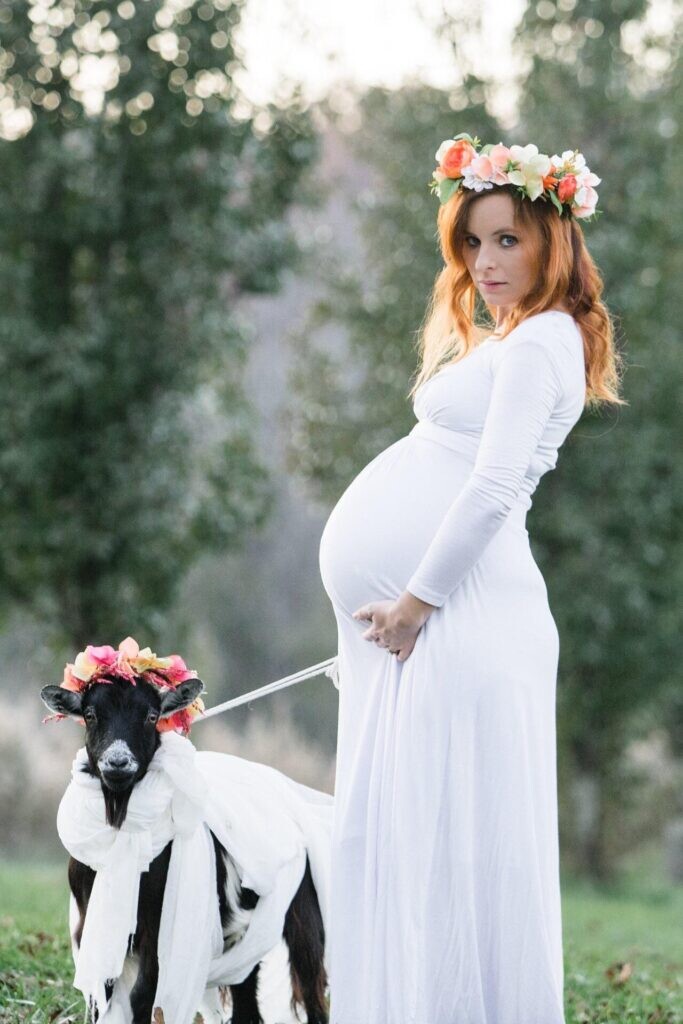 One of our goats and I are both pregnant with twins and due the same week. I made her a dress and took maternity photos with me. https://www.allforgardening.com/577995/one-of-our-goats-and-i-are-both-pregnant-with-twins-and-due-the-same-week-i-made-her-a-dress-and-took-maternity-photos-with-me/