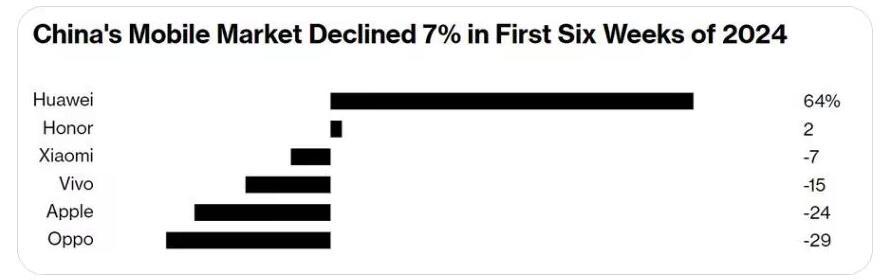 【Counterpoint:2024年初,iPhone在中国的销量下跌24%】 据Counterpoint Research的数据显示,今年前六周,苹果公司的iPhone在中国的销量下降了24%,在中国智能手机厂商中排名第四。 https://t.co/5xGI5graM2