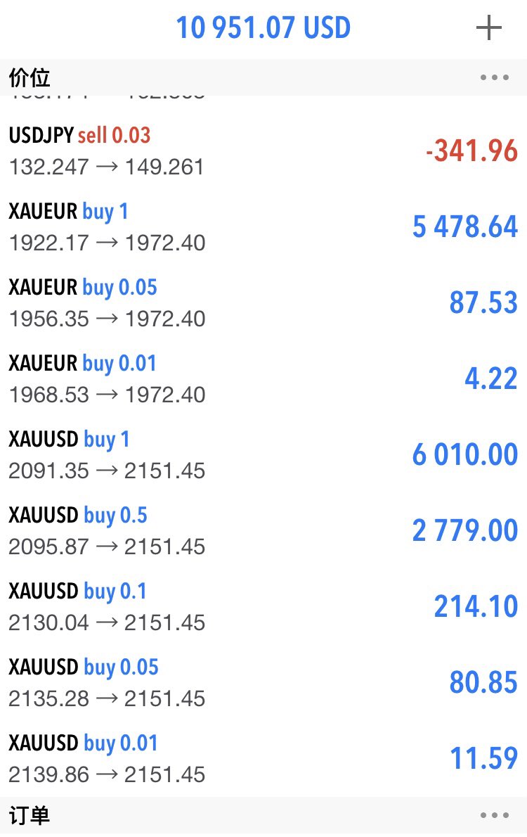 记录一下,黄金现在浮盈,这一波要是上三千最少可以弄25万美刀! https://t.co/PSoItwivya