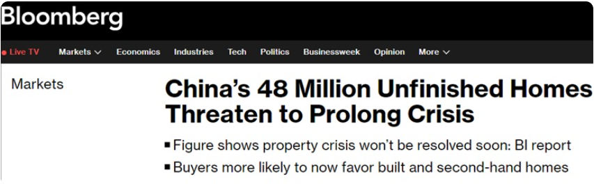 彭博社周三(8月14日)报道称,根据彭博行业研究(Bloomberg Intelligence)的一份报告,中国至少有4800万套房屋在建设完工之前就被售出