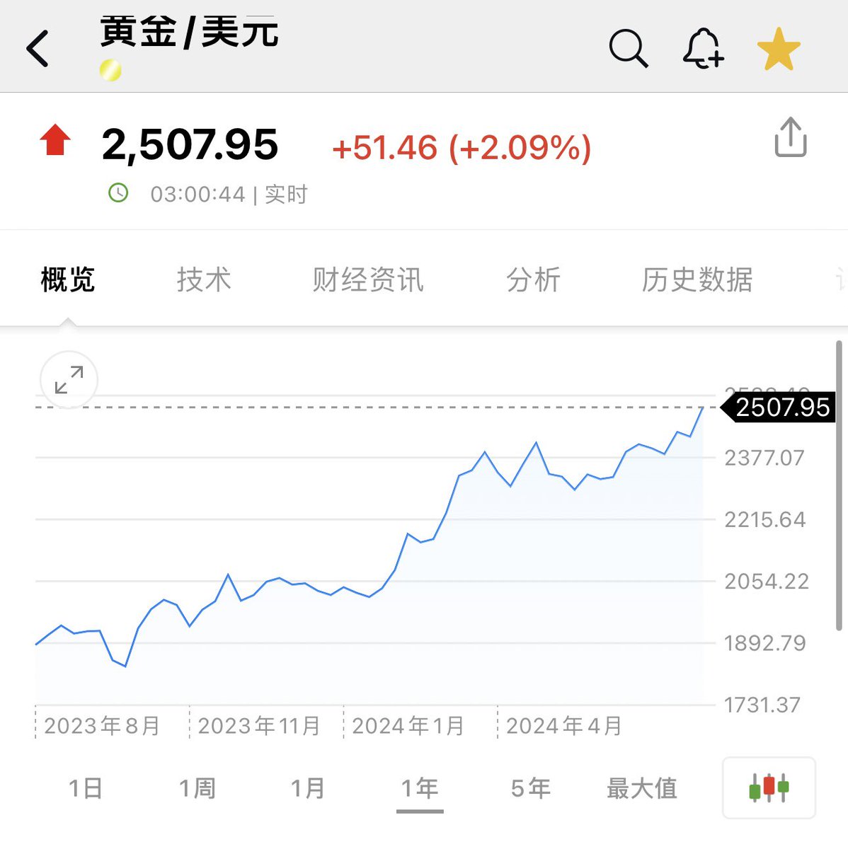 黄金涨疯了,已经正式突破2500美元大关 https://t.co/uPtTrfpi9D