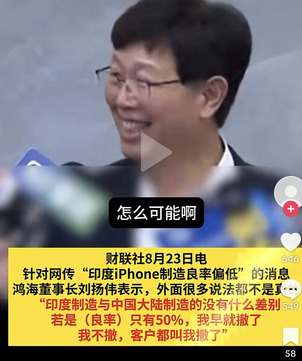 富士康董事长回应印度不良率只有50%的说法 https://t.co/cTzGm1tcz3