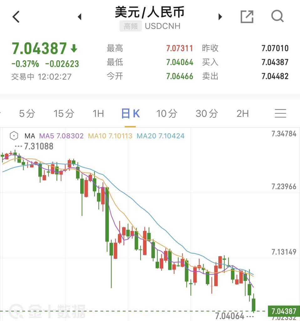 中国央行按兵不动,没有进行降息,这引发人民币汇率短线大涨,距离涨破7关口一步之遥 https://t.co/uoVhYoS62i