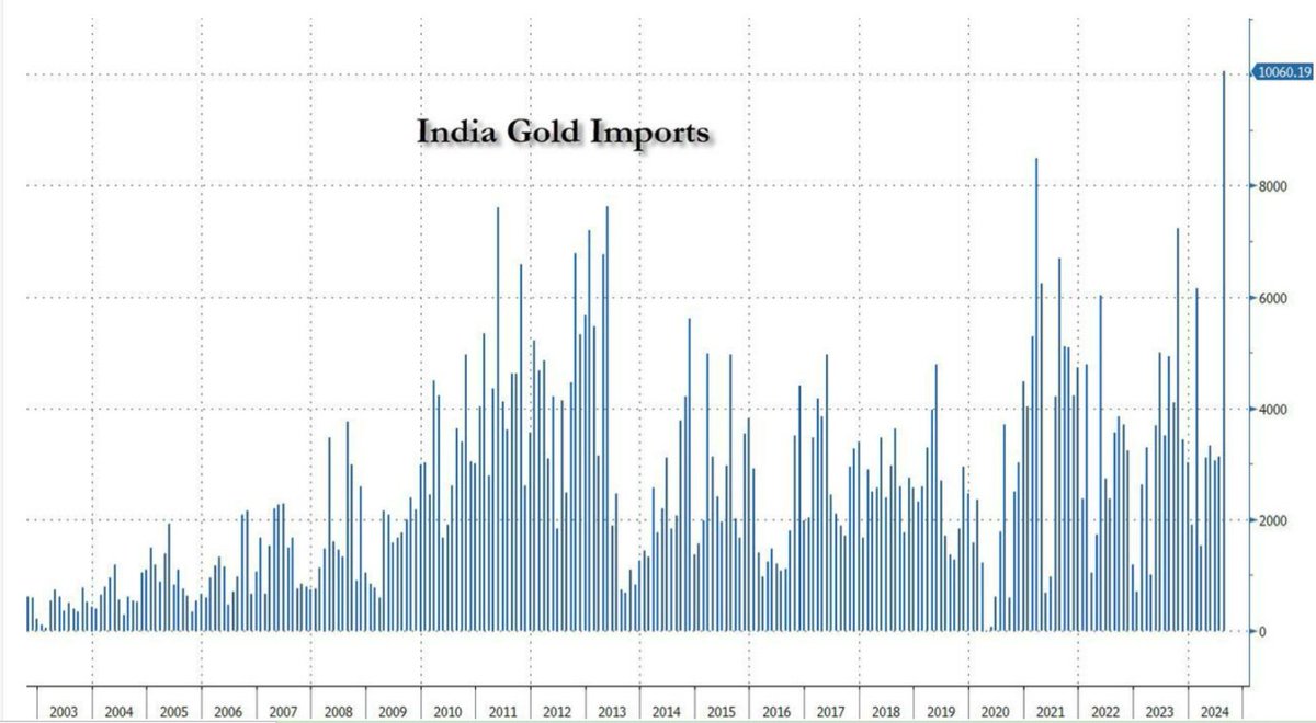 到目前为止,到 2024 年,印度黄金进口量增长了 30%。