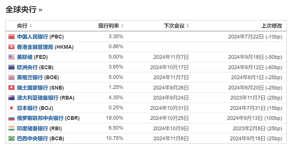 目前世界各个主流央行利率维持情况 https://t.co/bDsxQQf4uY
