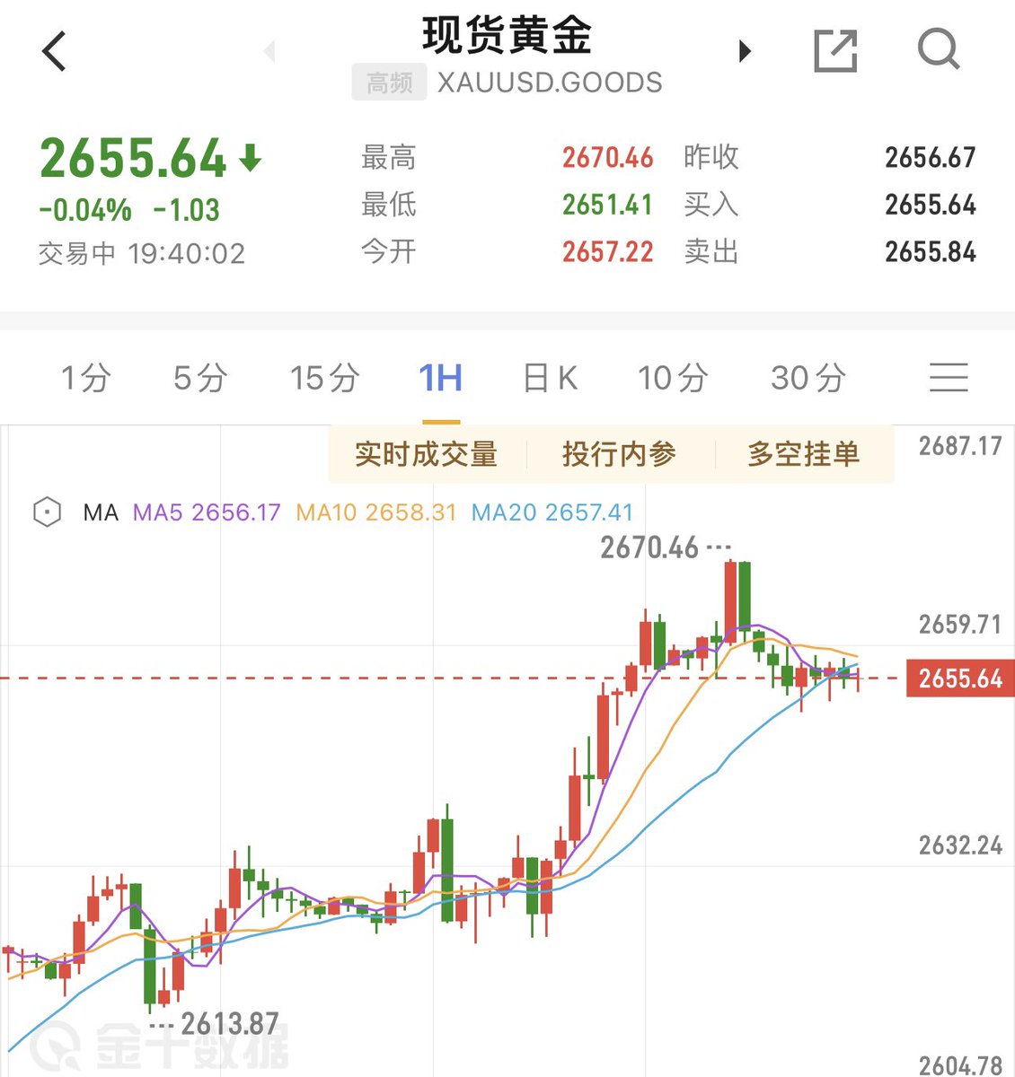 现货黄金涨破2650美元后,一直在其上方徘徊,连一点像样的回调都没有,根据我十二年来的交易经历,这是买盘强劲的表现,有大量买家等待回调抄底入场,这种行情往往只需一丝催化剂,就会再度大幅上涨!