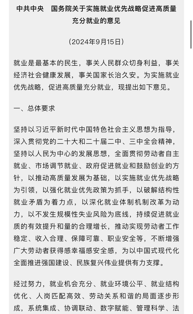 国务院刚刚发布《促进就业24条》,这应该是中共近二十年来第一次专门就业发布的国务院文件了