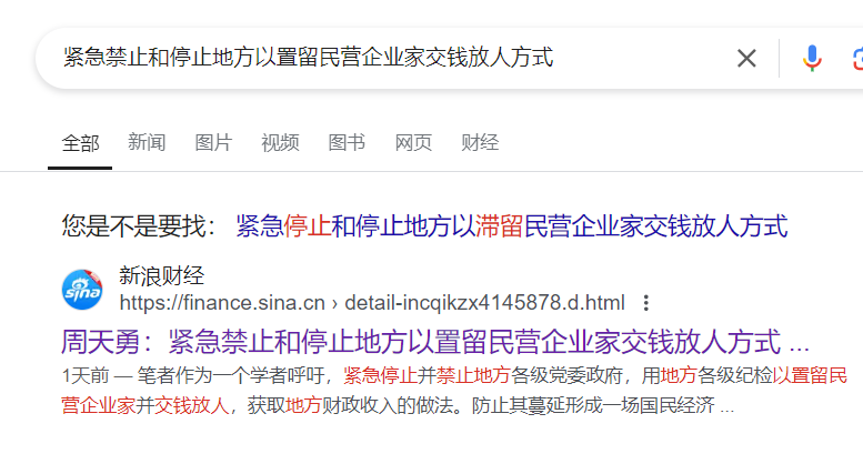 新浪财经:紧急禁止和停止地方以置留民营企业家交钱放人方式